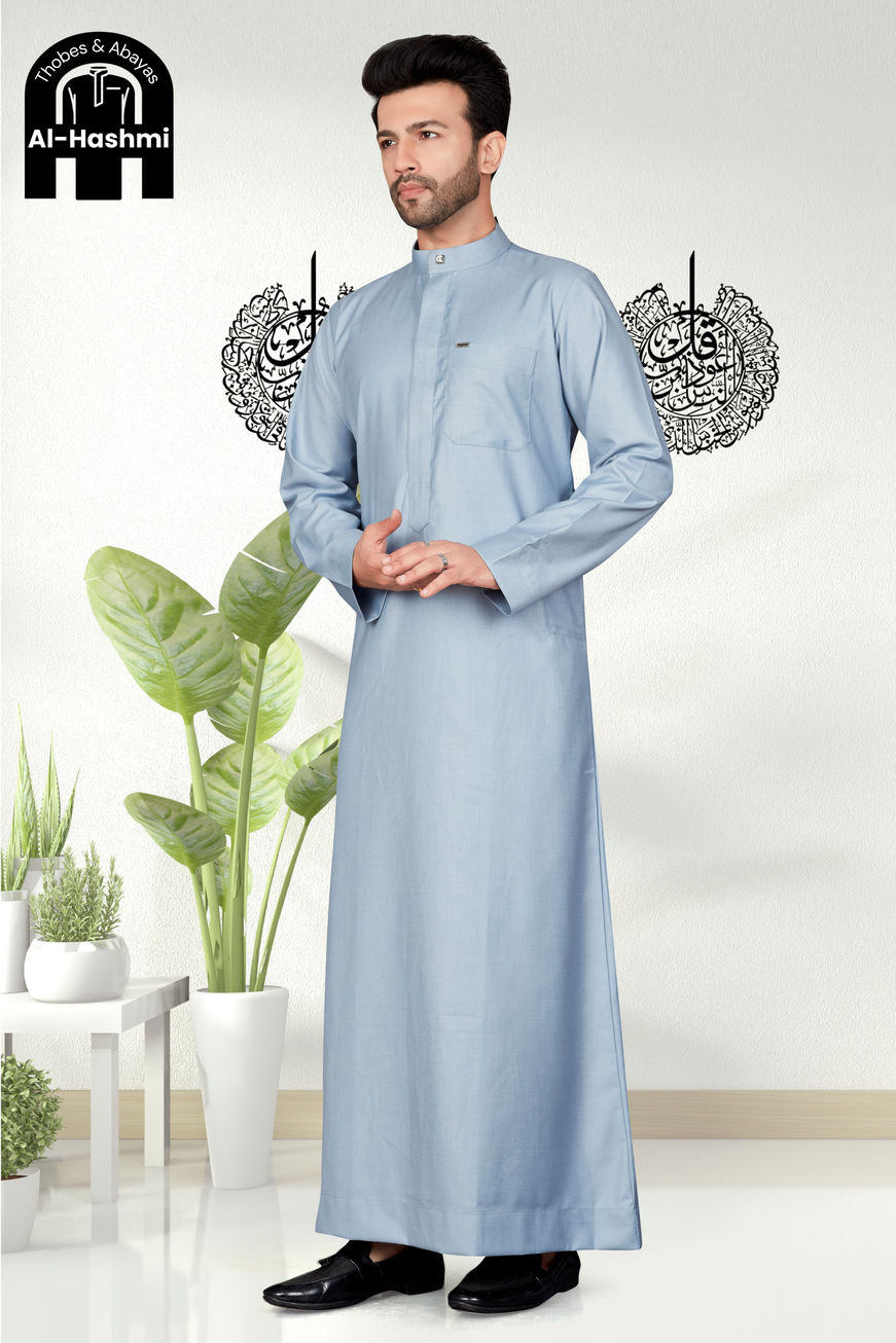 Introducing the Classic Thobes from Al-Hashmi Thobes' 2025 Collection. Crafted from Marco Roberto fabric, these thobes are exceptionally soft, comfortable, and durable. The fabric guarantees no shrinking or color fading, keeping your thobe looking fresh for longer. With top-class stitching, these thobes reflect both elegance and quality. Available in all sizes, each thobe comes with a 6-month warranty for fabric, color, and stitching