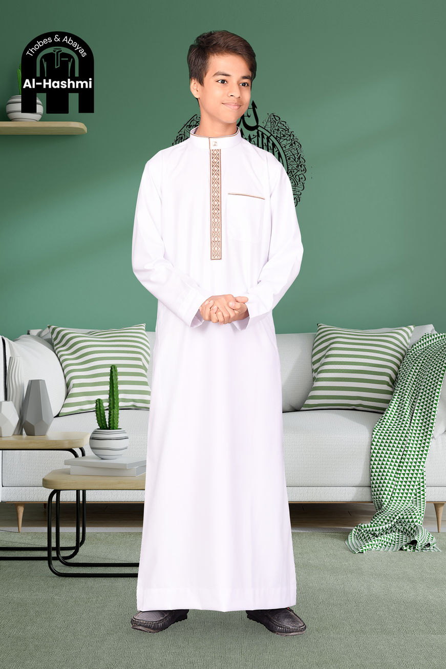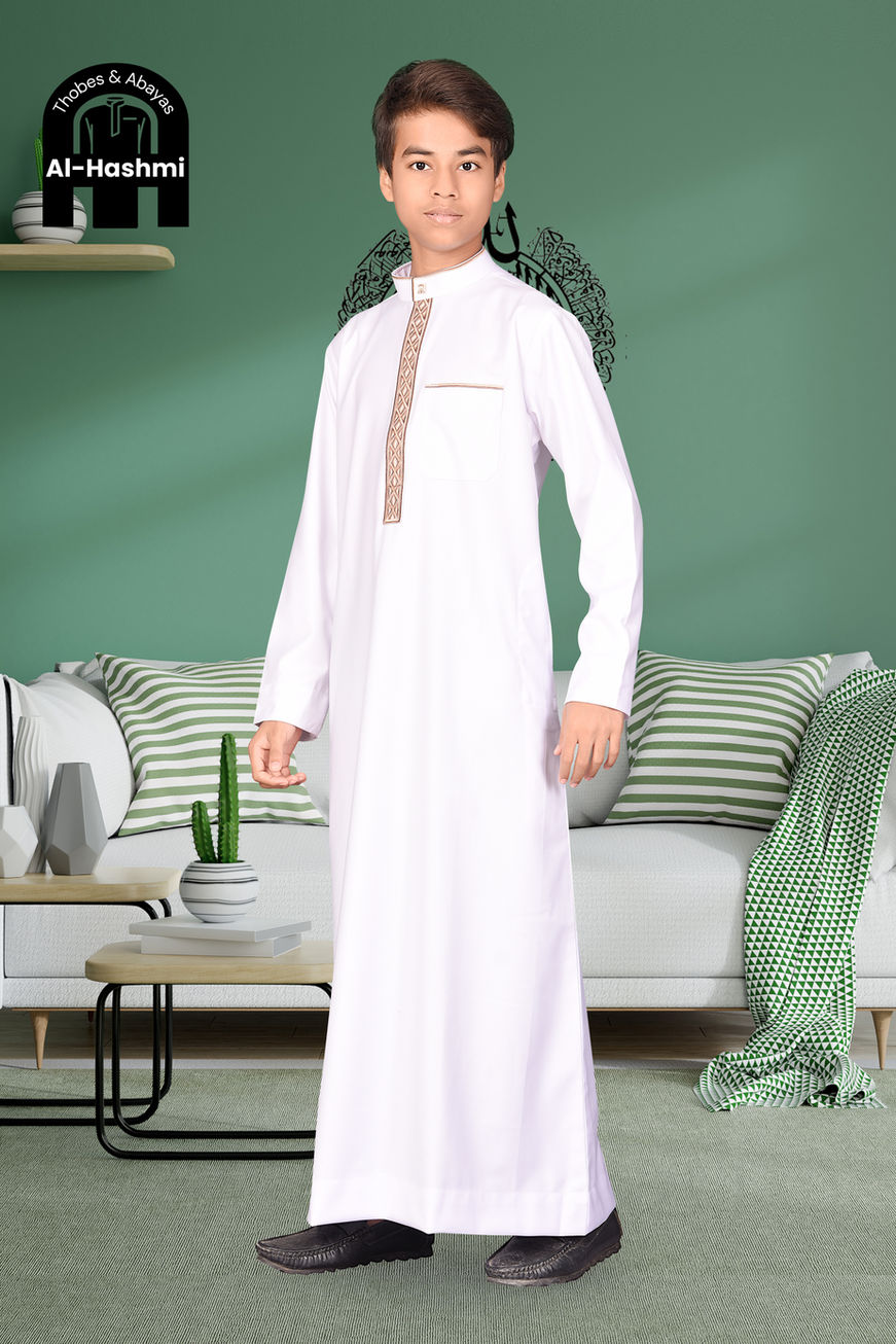 Introducing the Embroidery Thobes from Al-Hashmi Thobes' 2025 Collection. Crafted from Marco Roberto, these thobes are exceptionally soft, comfortable, and durable. The fabric guarantees no shrinking or color fading, keeping your thobe looking fresh for longer. With top-class stitching, these thobes reflect both elegance and quality. Available in all sizes, each thobe comes with a 6-month warranty for fabric, color, and stitching