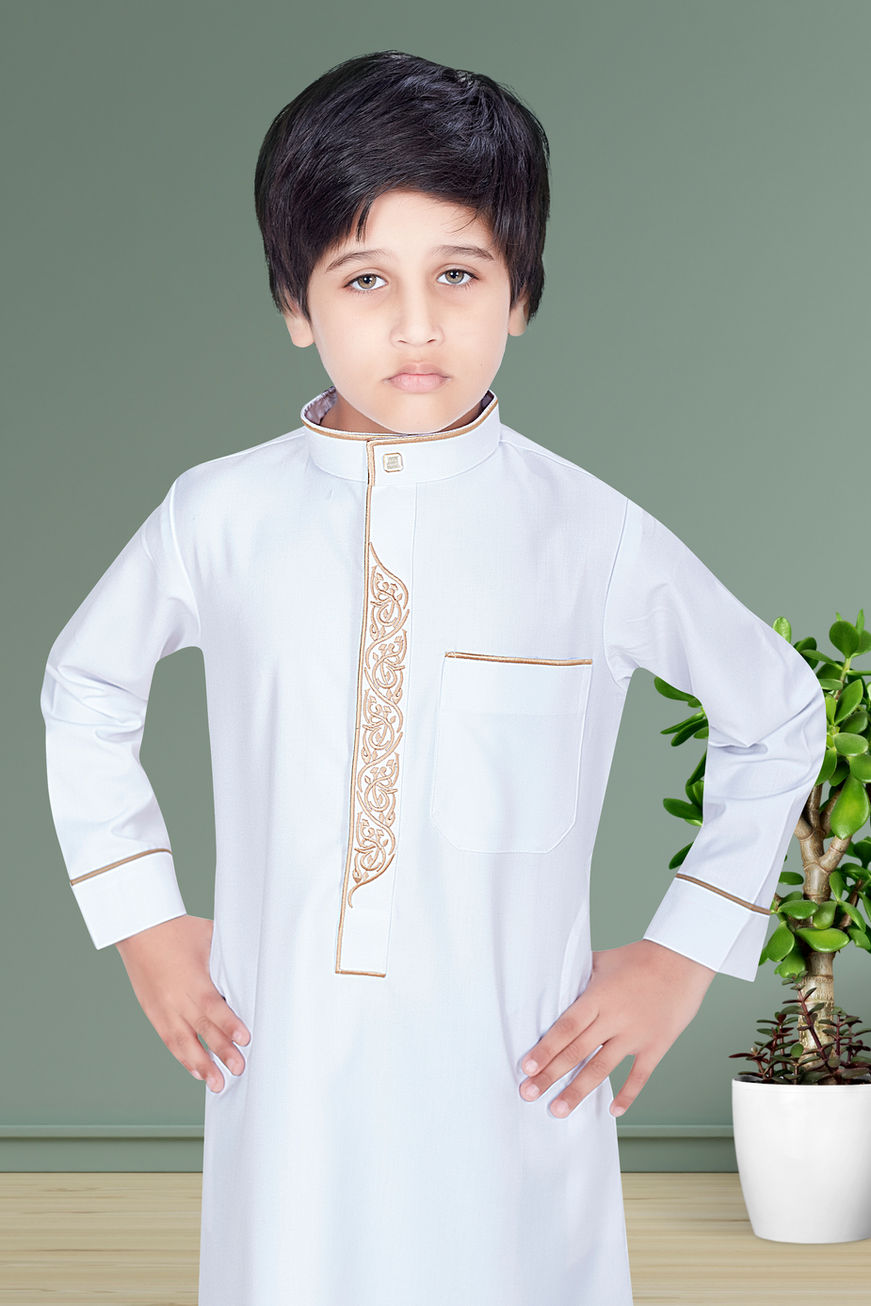 Premier Kids Embroidery Thobe – 2026 Design | Al-Qaswa Fabric