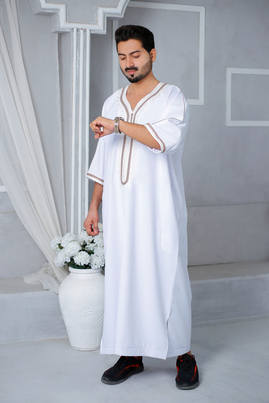 Authentic Moroccan Heritage: Our thobes pay homage to the rich Moroccan culture, combining traditional elements with modern flair. Experience the elegance of Moroccan designs, featuring intricate patterns, tasteful embroidery, and sophisticated embellishments.